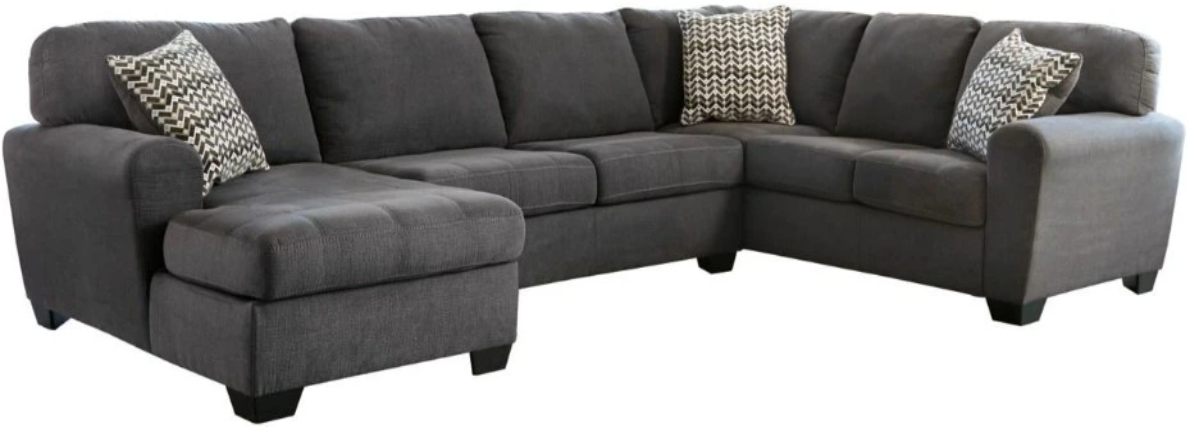 Includes left-arm facing corner chaise, armless loveseat and right-arm facing sofa