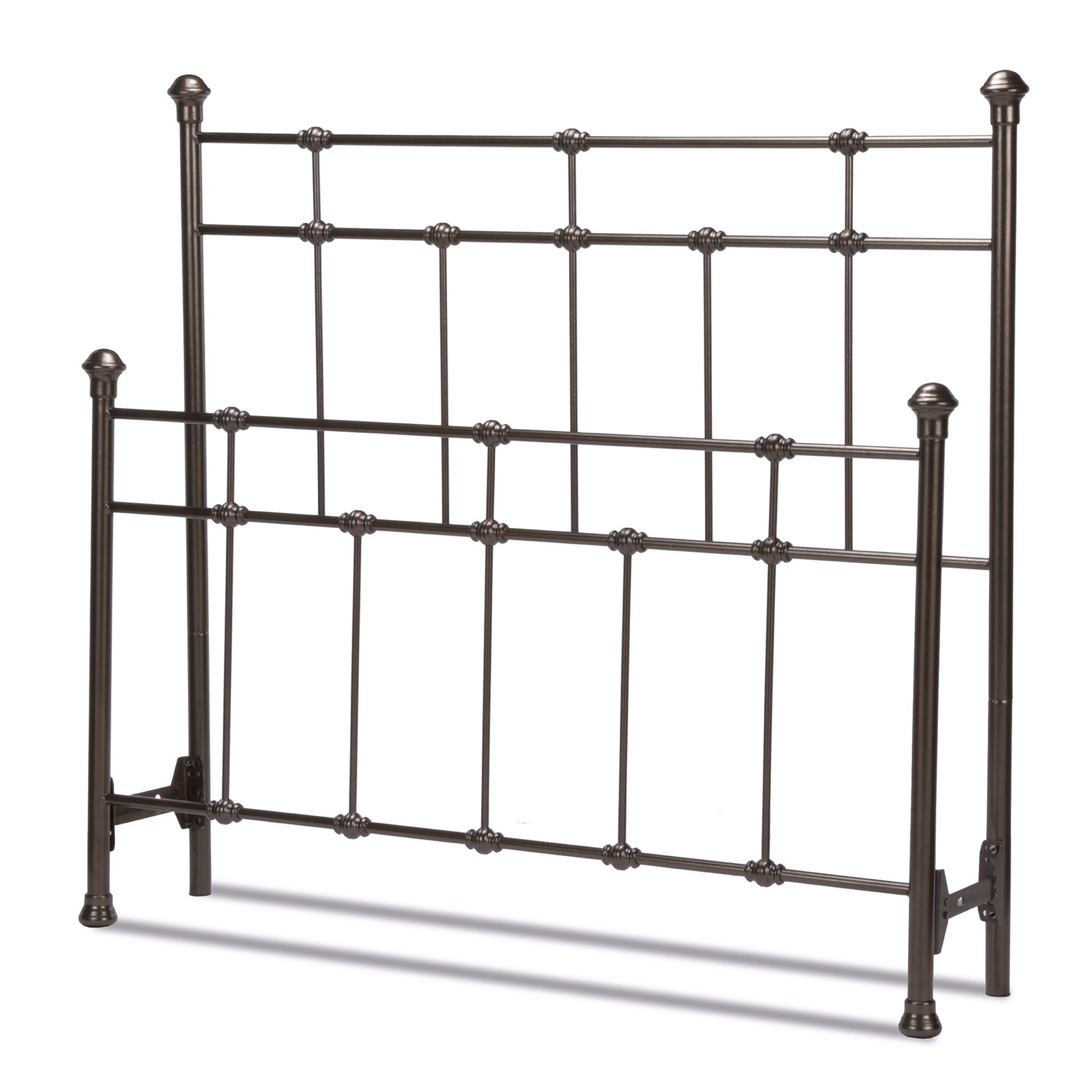 The Dexter portrays the uniquely historic look of simple headboards from an era we thought was gone. Constructed of carbon steel for stability and years of everyday use, the geometry of this bedroom piece relies exclusively on right angles to create a handsome headboard with pared down fussiness. The clean intersections of the vertical and horizontal elements reveal a decidedly masculine profile. Coated in a Hammered Brown finish, this 56 in. headboard is designed with spindles and finished with solid castings to give the overall construction a hearty and sturdy nature. A good ornamental (or fashionable) headboard will fuse with the surrounding decor, accent your other bedroom furniture and transform a room from ordinary into something interesting and sophisticated. This includes a headboard panel, instruction sheet, and hardware bag with everything needed for assembly. A bed frame is not included for box spring or mattress support. The Dexter Headboard comes with a 10-year limited warranty against manufacturing defects.