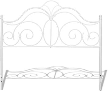 The Rhapsody features soft, pretty curves, making it a lovely focal point for any bedroom. Constructed of carbon steel, the 55-inch grill includes fanciful waves, delicate scrolls, and posts topped with round aluminum cast finials to complement the delightful style. This aesthetically pleasing bed has a Glossy White finish to make a statement with the unique headboard. This bedroom piece is equally at home with bold, bright top-of-bed or soft, muted pastels. A good ornamental (or fashionable) headboard will fuse with the surrounding decor, accent your other bedroom furniture and transform a room from ordinary into something interesting and sophisticated. This includes a headboard, instruction sheet, and hardware bag with everything needed for assembly. The Rhapsody Headboard comes with a 10-year limited warranty against manufacturing defects. A bed frame is not included for box spring or mattress support.