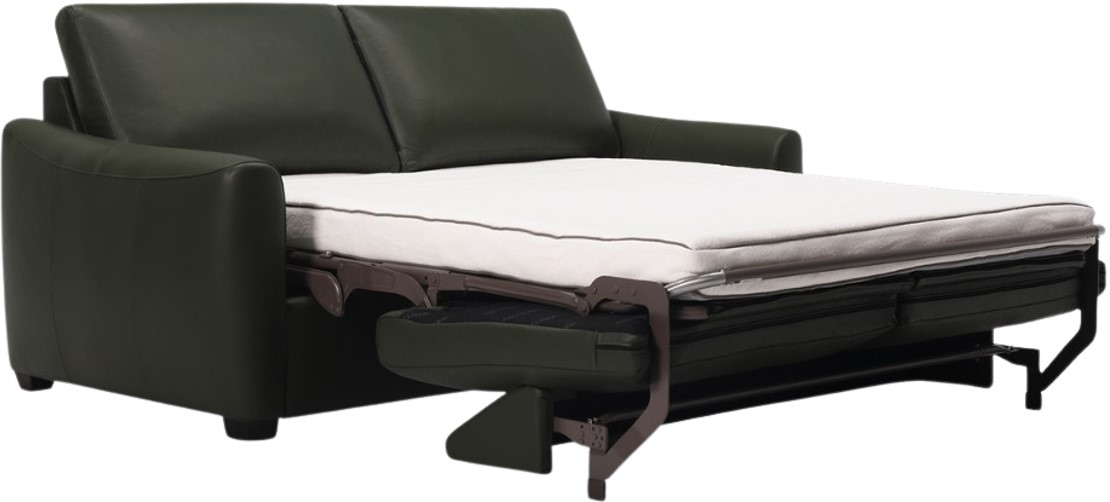 Italian designed, spring-loaded sleeper mechanism with 4.5" memory foam mattress with gel topper and covered in a plush quilted ticking. Mattress is supported by a heavy gauge steel grid and synthetic webbing.