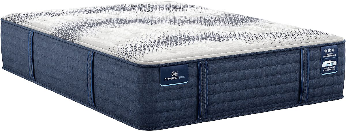 Yorkshire Plush offers the ultimate plush sleep experience. Built around Serta’s advanced 5 ZoneResponse™ latex foam Core, Yorkshire delivers personalized support with luxurious softness. Layers of graphite-infused True Response™ latex foam cradle and cool your body, while CoolFeel™ Pro fabric enhances breathability and comfort.Read More