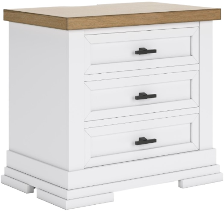 Casual style with substance. This two-tone nightstand raises the bar on comfortably cozy design in your soothing sanctuary. A sturdy silhouette with a classic white finish and black metal hardware exudes modern farmhouse vibes.Read More
