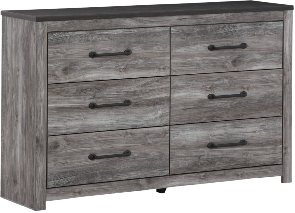 Alluring smoky gray hues create an ambiance that just feels right. This 6-drawer dresser has a charming wood-like appeal enriched by a two-tone, textured look. Light neutral shades contrasted by a dark charcoal finish bring a refined yet relaxed feel to contemporary decor and a sense of serenity to your space.Read More