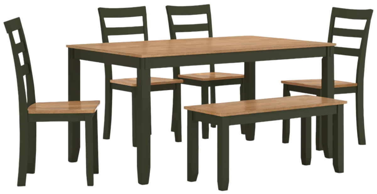 Complement your home’s simply relaxed sensibility with this dining table, chairs and bench. A charming green hue offers a chic contrast to the natural wood tone, for a casual look that vibes with a variety of aesthetics.Read More