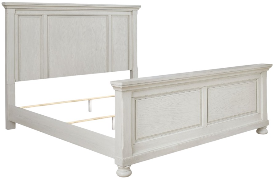 Elegant, timeless furnishings take your bedroom to the next level. Nothing does that better than this king panel bed. The antiqued white finish with a wonderful grain texture radiates sophistication, making this the perfect piece to round out the ultimate tasteful bedroom.Read More