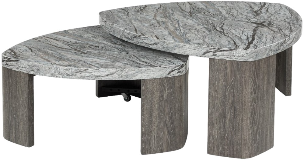 Striking contemporary form, meet can’t-miss function. This stacked coffee table pairs the look of faux gray marble with a weathered gray wood grain for a simply chic approach to monochromatic style.Read More
