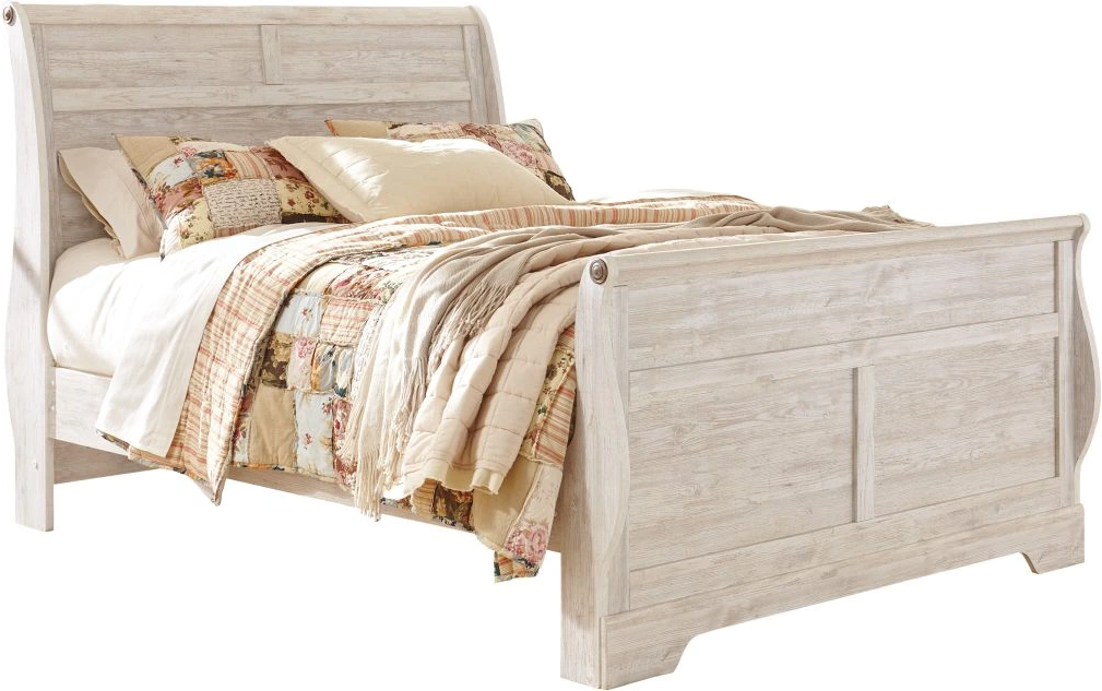 With its whitewash finish that’s so wonderfully easy on the eyes, this queen sleigh bed makes the ultimate statement for your coastal cottage or shabby chic inspired retreat. Sure to carry you away to a dreamy time and place, this sinuous bed is adorned with replicated planking for a homey, rustic touch.Read More