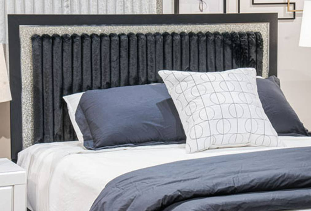 If glitz and glam are your jam, you’re gonna love this queen upholstered panel headboard. Gleaming glitter and dazzling chrome-tone touches are paired with tufted black faux fur for a stunning pop of pizzazz. Loaded with chic flair and serious sparkle, it's a simply splendid way to wake up your inner sanctum’s style.Read More